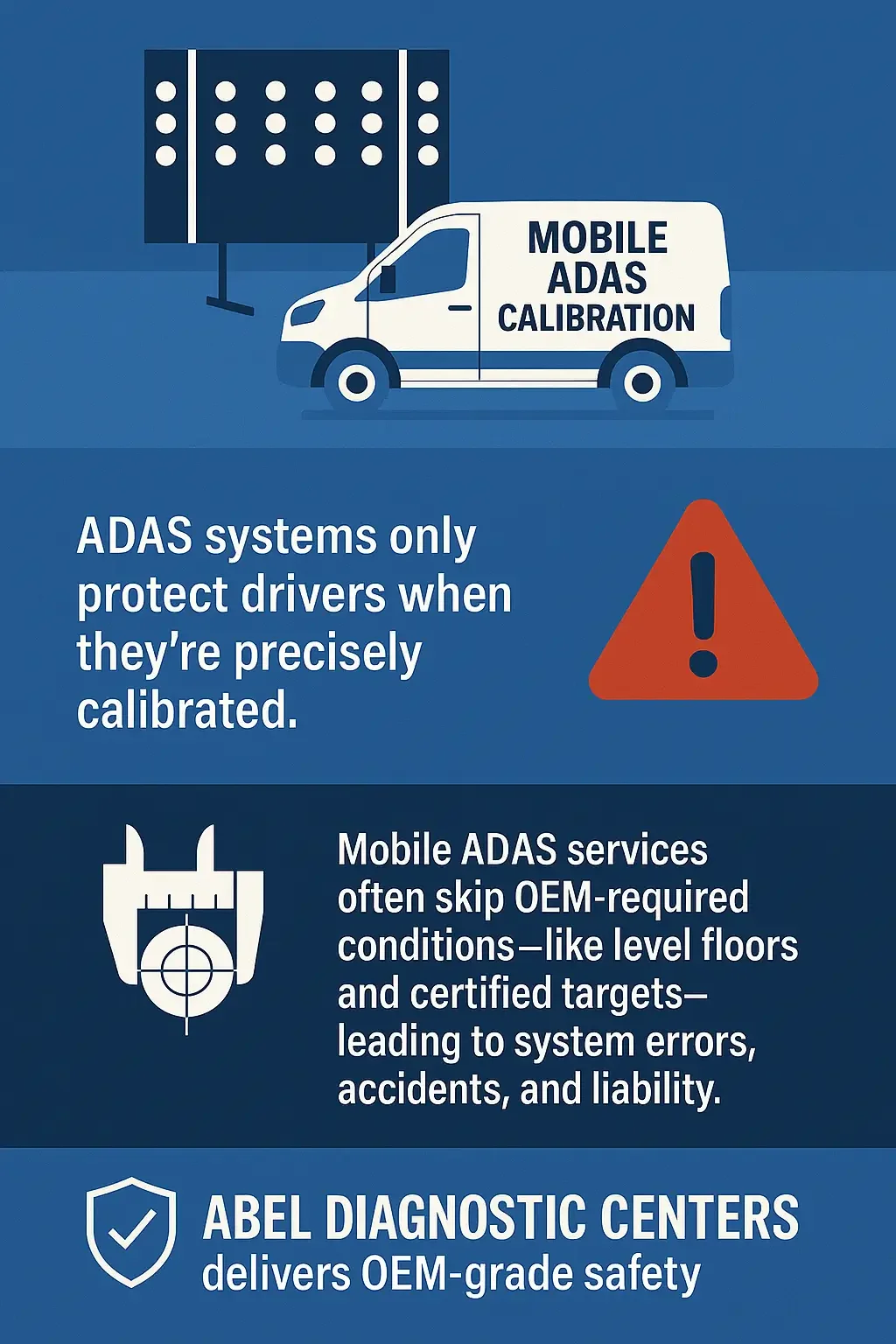 At Abel Diagnostic Centers, we perform ADAS calibrations that meet or exceed factory standards: